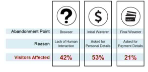 Final Waverer: this is the stepping off point for a booking and where abandonment is the most painful! The associated point of failure – a request for payment details – is unavoidable (the credit card can’t process itself) and the abandonment risk can be anticipated. A proactive, interactive, strategy should be deployed in an earlier stage – perhaps using the Virtual Assistant in a concierge mode (as mentioned earlier) so this Final Waverer can be walked through the payment steps in a more personal way than the typical “continue” button sequence.