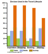 The graph of device presence (desktop; tablet and mobile) in each phase of the travel life cycle does exactly that. It paints a clear picture of where each device stands in relation to the others and enables three high level observations to be made: