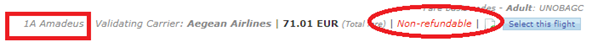 If received like this from the GDS, the non-refundable offers will be highlighted from the search results display, for agents to have a quick overview of the results, without having to verify the fare rules for each flight offer.