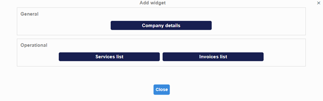 The new section from the Operational module – Order Dashboard, allows the possibility to display the widgets related to various operations performed on an order (general details, services list, invoices list, cashing documents, supplier invoices list, payment documents, balances list).