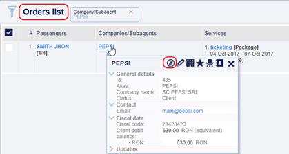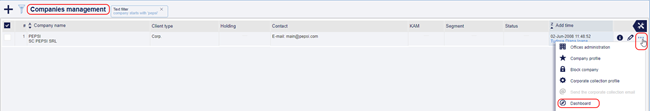 The new section is displaying useful information about a specific company and it can be accessed as follows: from the CRM module -> Companies, from Companies Management, from each company’s special option as per below images: