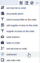 - From the Orders List, from each order’s special option, when the user will be redirected to the dashboard of that specific order.