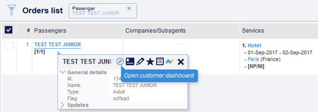 This new section available in the latest version of TINA provides easy access to passengers' information; either if you need details from an operational perspective (such as past, active and future travel services, for example) or from a financial point of view (let's say overdue invoices or status of the invoices added on the company associated to that passenger), you can access them from the mentioned Dashboard.