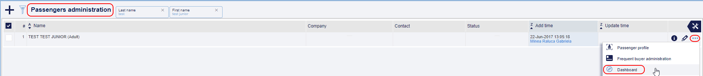 - From Passengers Management, from each passenger’s special options and the user will be redirected to the mentioned section