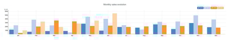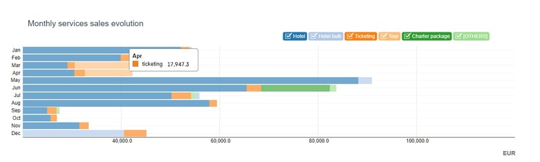 - Monthly Services Sales Comparison - This chart showcases on a monthly basis the sales performed in a specific year, split on type of service.