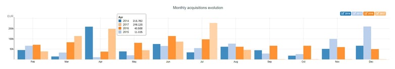 - Acquisition Overview - Using this report, you can access information in respect of acquisition figures, displayed in a clear tabular form. The report showcases yearly aggregated acquisition figures, yet, a more detailed analysis may also be accessed, such as monthly split of the acquisition figures along with split on acquisition service type.