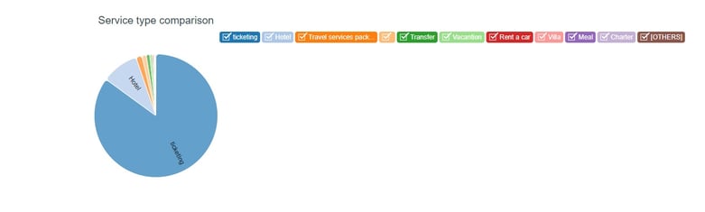 - Service Type Comparison - When dealing with a diverse range of services offered, it may come in handy knowing how each service performed in the previous period in regards of sales volume. The report is presented in the form of a pie chart, easy to read and analyze.