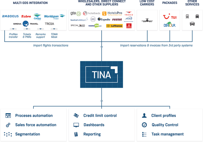 In today's competitive and dynamic travel industry, automation of processes is a must. Starting with automated processing of bookings made in 3rd party systems, continuing with customer profiles, invoicing and settlements, as well as automated reports and alerts, TINA can help you increase your productivity and business control.