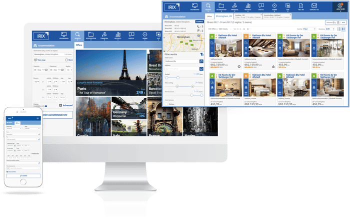 IRIX brings all the great features and functionalities of a robust travel reservation system encased in a completely intuitive interface. This travel NDC enabled content aggregation platform allows for easy booking and distribution of any type of travel service: flight, hotel, car, insurance, cruise, activity, as well as travel packages. With IRIX you can choose one of the following Distribution Channels - B2B, B2C, corporate, whitelabel.