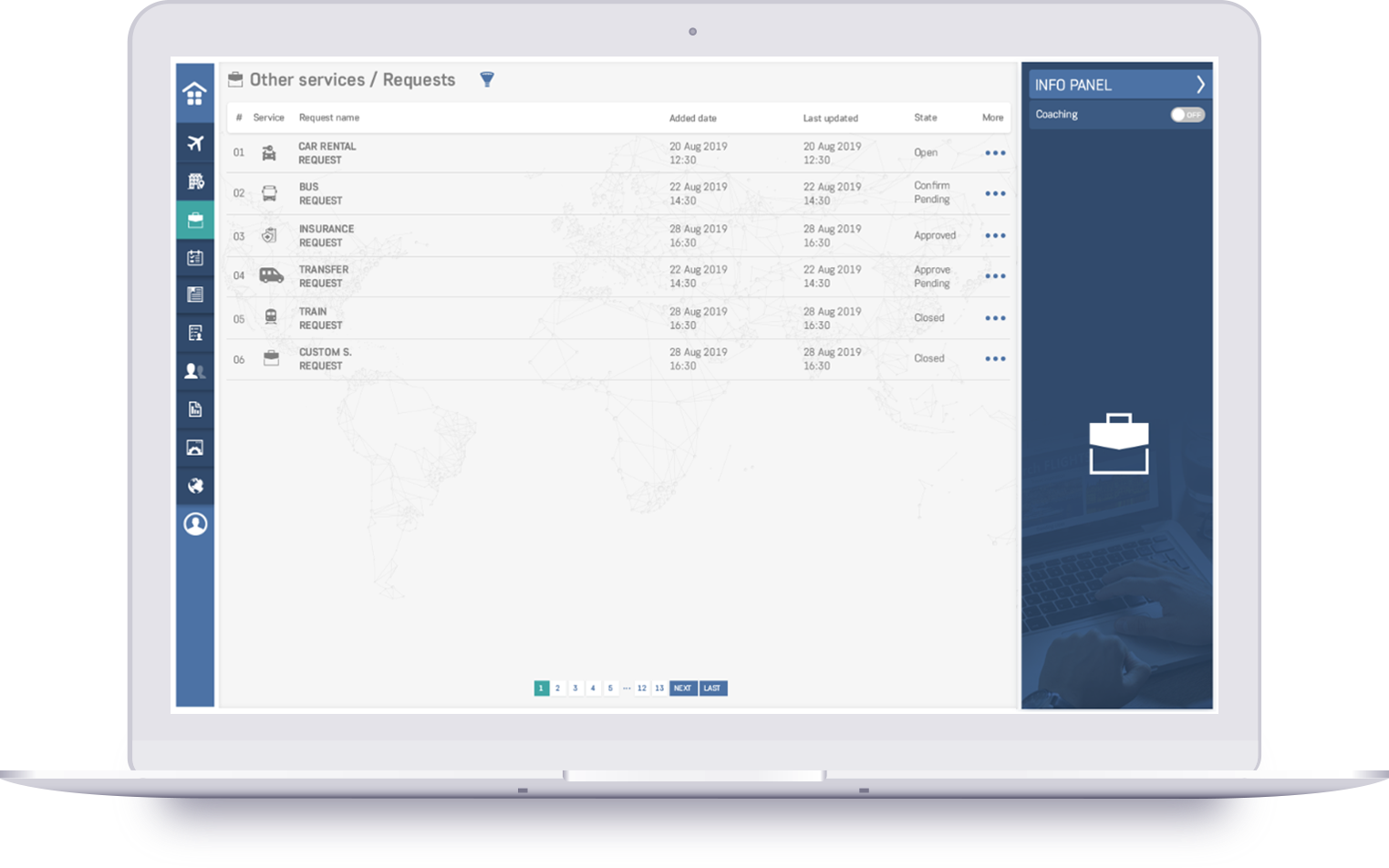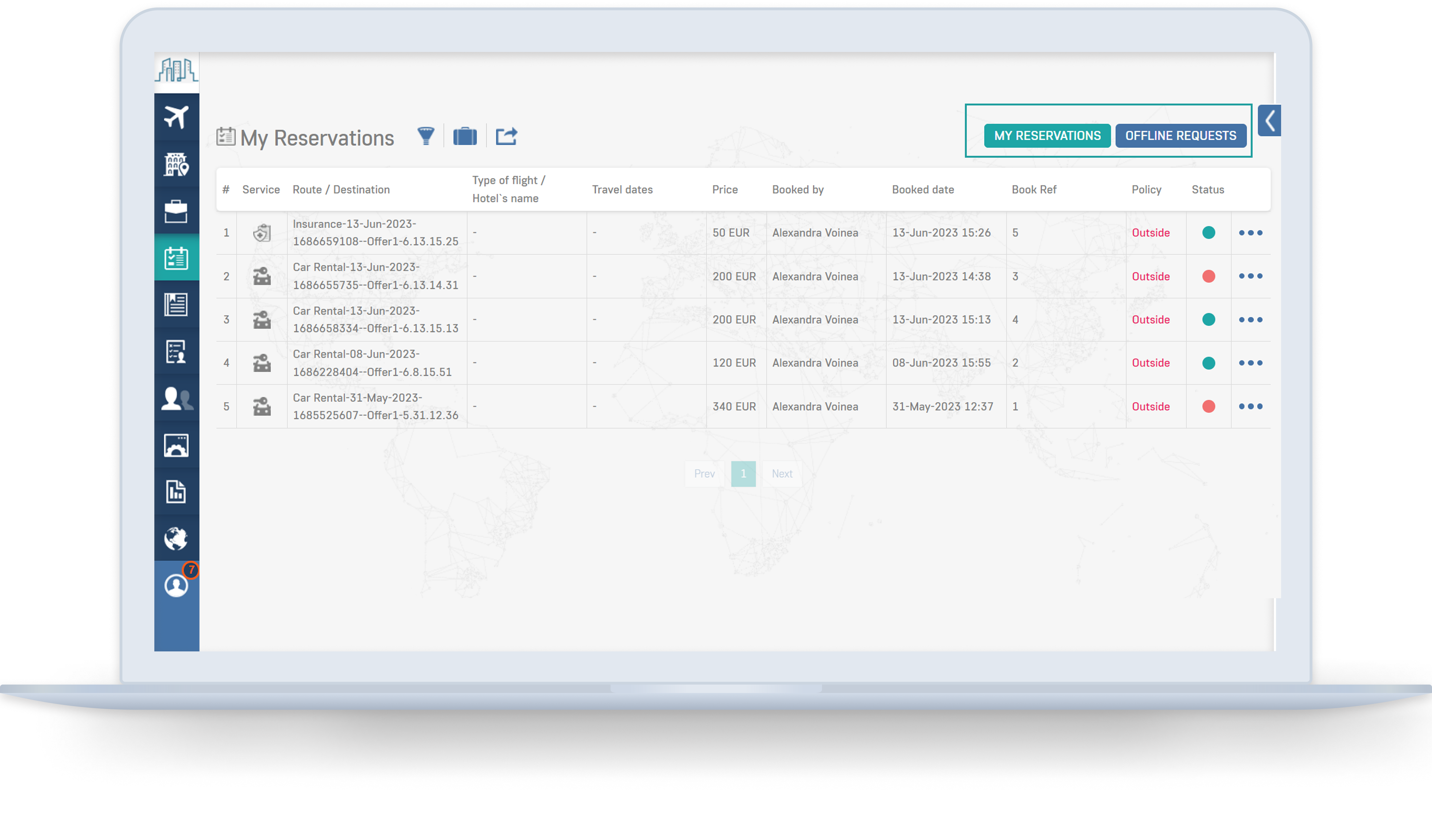 Your corporate customers can send you their travel requests for services such as flights, hotels, transfers, car rental, insurance, visa, train, bus and can also benefit of one single management view for all online and offline bookings directly from the NOVA interface. Additional details, mentions and special notes can be added in the same interface.