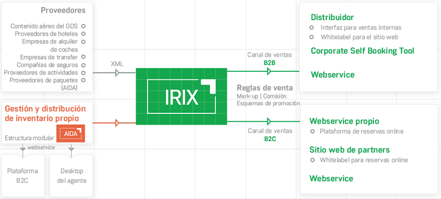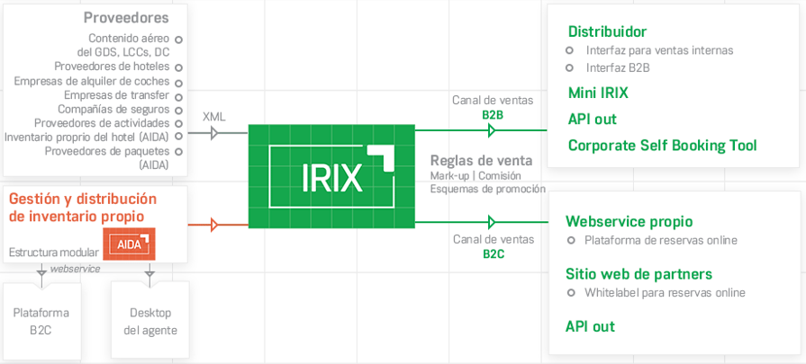 - Red de distribución: interfaz basada en web con inicio de login, white label, XML/ API/ webservices, B2B2C, Corporate booking tool