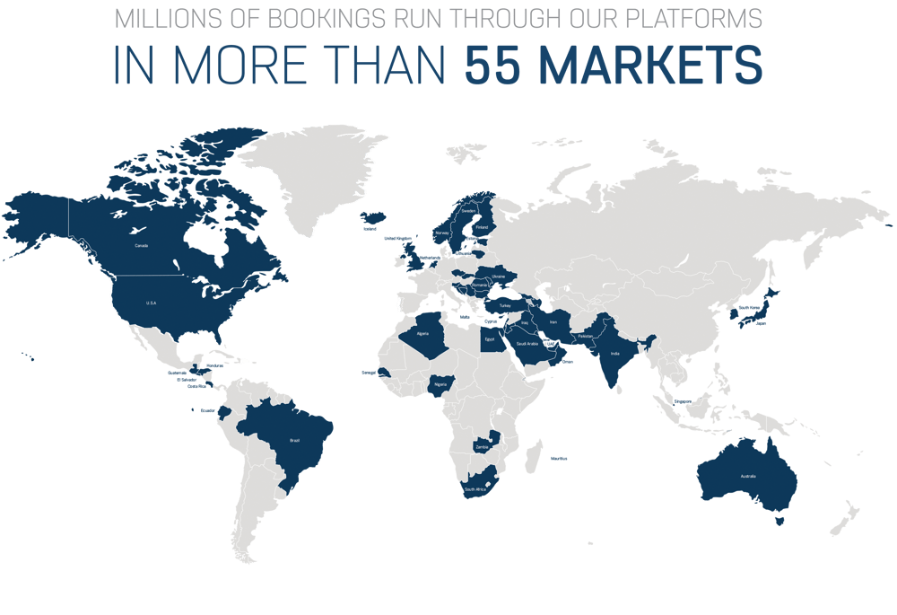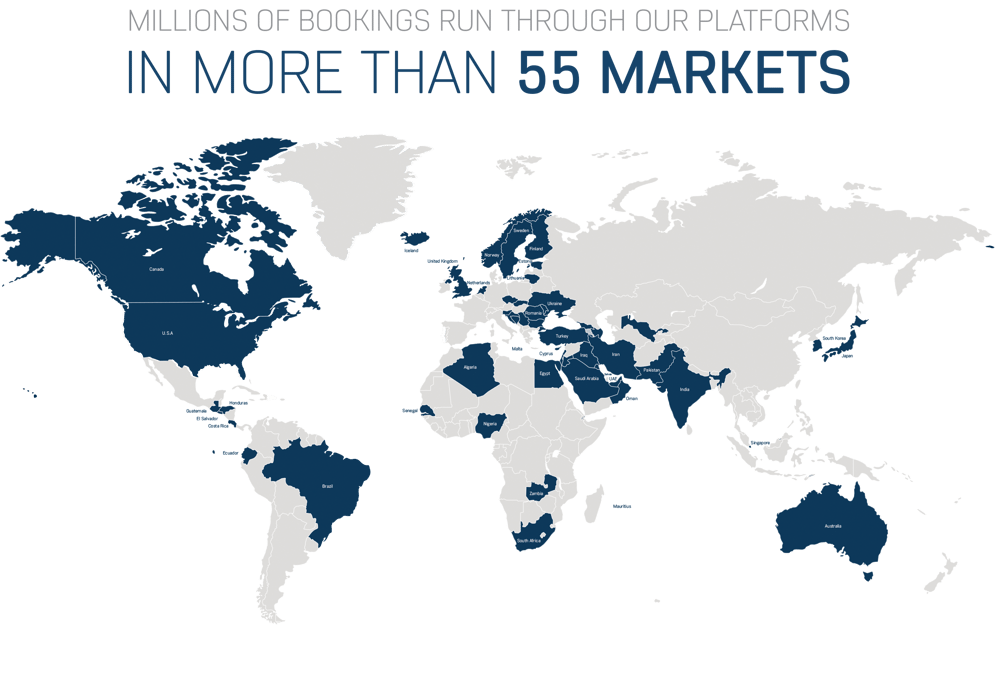 From TMCs and DMCs to tour operators, wholesalers, OTAs, PCOs and travel retailers, we deliver scalable, enterprise-grade technology that supports complex, multi-market operations across more than 60 countries, including Algeria, Australia, Azerbaijan, Bahrain, Bosnia and Herzegovina, Brazil, Bulgaria, Canada, Costa Rica, Croatia, Czech Republic, Cyprus, Ecuador, Egypt, El Salvador, Estonia, Finland, Georgia, Guatemala, Honduras, Iceland, India, Iran, Iraq, Israel, Japan, Jordan, the Kingdom of Saudi Arabia, Kuwait, Lebanon, Lithuania, Malta, Mauritius, Moldavia, Nigeria, Norway, Oman, Romania, Senegal, Serbia, Singapore, Slovakia, Slovenia, South Africa, South Korea, Sweden, Turkey, Ukraine, the United Arab Emirates, the United Kingdom, the United States of America and Zambia.