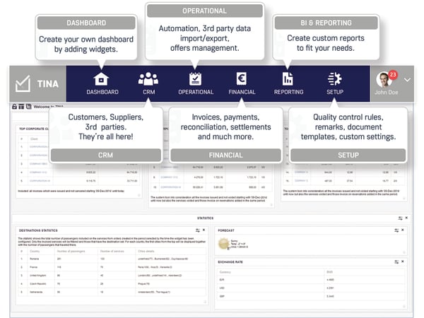 TINA is a travel ERP built to streamline, automate, and connect every part of your business. From automatically importing flight transactions, service reservations, and invoices from third-party systems to automating back-office tasks, reporting, and financial control, TINA reduces costs, increases accuracy, and provides you with the visibility needed to make faster, smarter decisions.