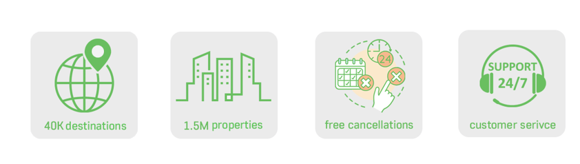 Com mais de 1.500.000 propriedades em 40.000 destinos em todo o mundo, pretende ser o fornecedor universal de acomodação para Agentes de Viagens, Operadores Turísticos, OTAs e outros.