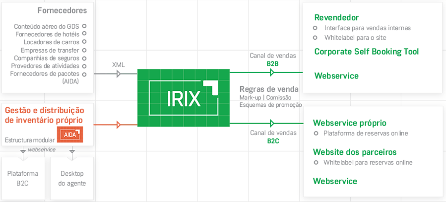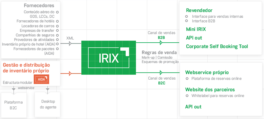 - Rede de distribuição: interface baseada na web com login, white label, XML/ API/ webservices, B2B2C, Corporate booking tool