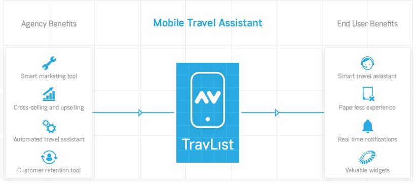 TravList will serve your customers as a smart travel assistant. With this app, travellers will have access to their travel details and other useful information about their itineraries: trip details, flight changes, weather at destination, local maps and other details.