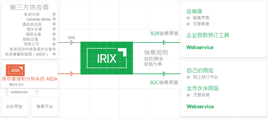- 分销网络: 线上登入预订界面, 页面嵌套, XML / API 和各类 Web 服务, B2B2C, 企业在线预订工具